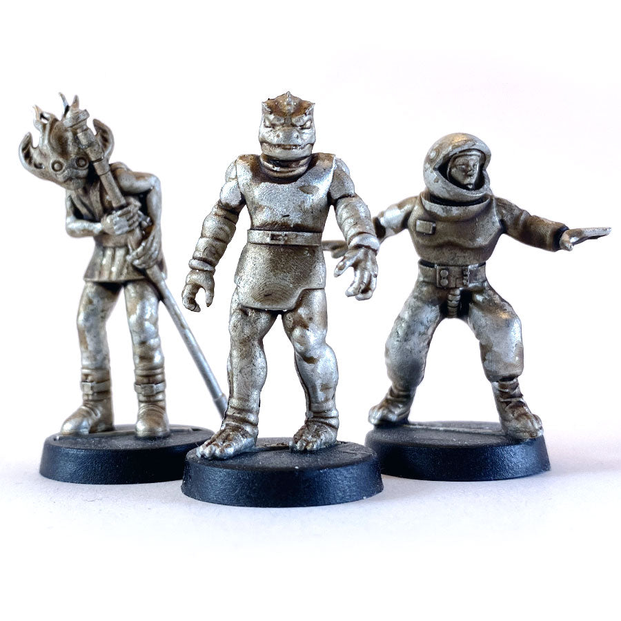 A trio of space farers, minding their own business. A Beefhead Elder, Ensign Packman, and Gary the Gorp.