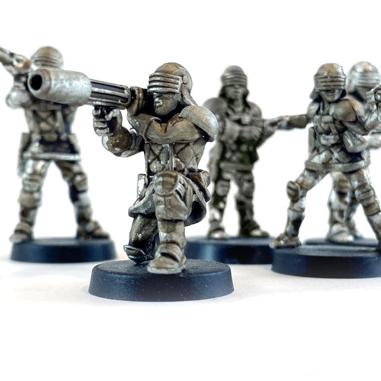 A fire team of Astroguards (5 figures), including one trooper armed with a shoulder braced heavy meson blaster.