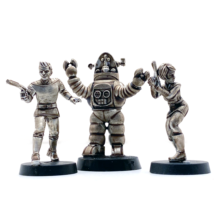 The senior crew of the starship Achilles. Captain Curt, First Officer Nico, and science robot TOBOR.