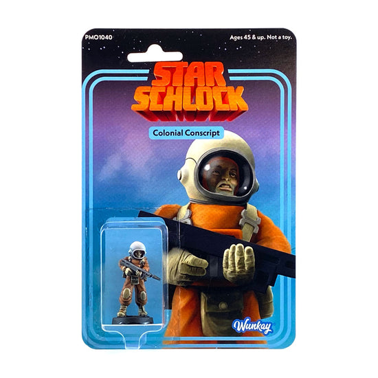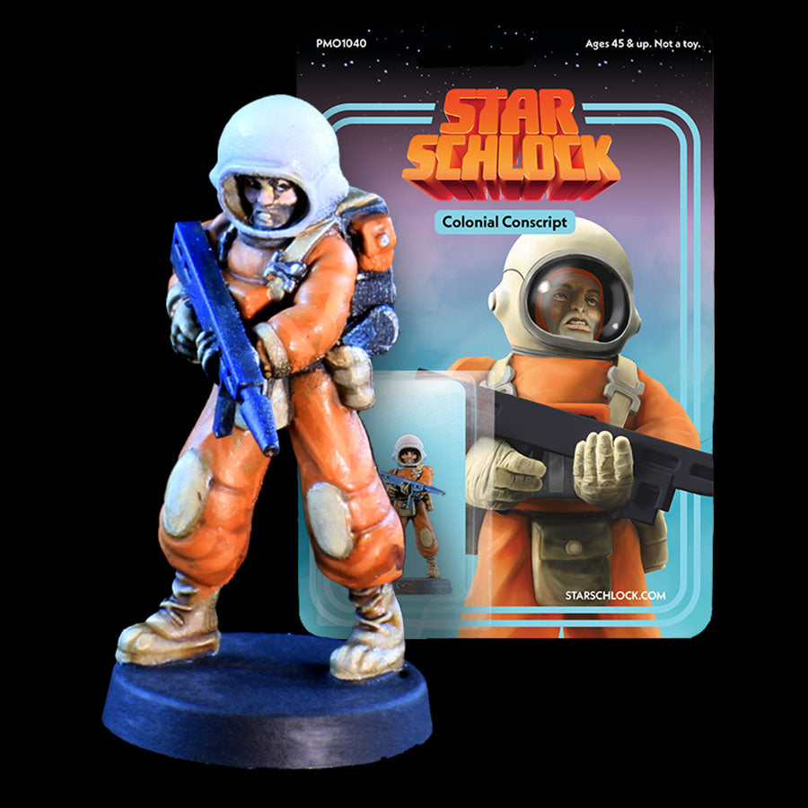 Holding the line of a disintegrating confederation, the conscripts of the Utopian Colonies are often pressed into armed service by conquerors and liberators on both sides of the great galactic war. This prepainted 28mm metal sci-fi miniature comes in collectible packaging, already affixed to a plastic slotta base (20mm wide) and ready for gaming.